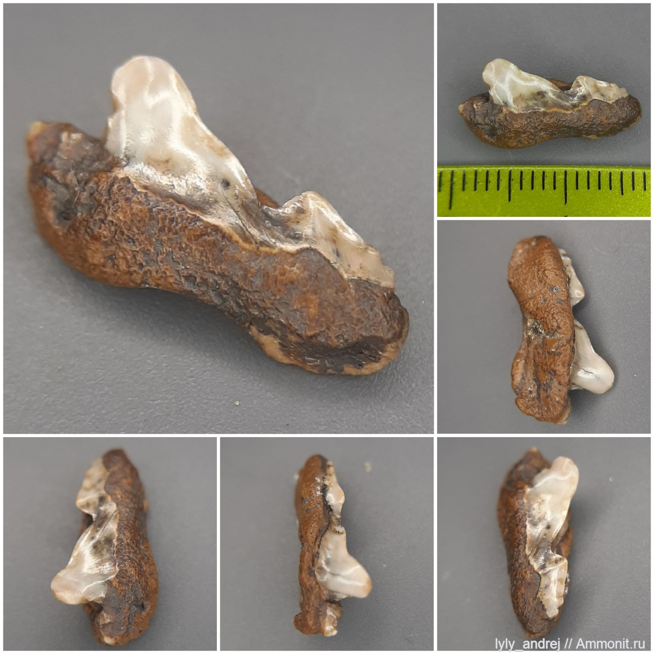 В просеянном сите увидел что-то странной ("фосфорит с эмалью"), после промывки понял что это зуб, но первое в голове промелькнуло: "Сломан (((". Но при внимательном рассмотрении я осознал, что он целый, просто зуб аномально-неправильного роста. К какому роду зуб относится, даже не решаюсь сказать.