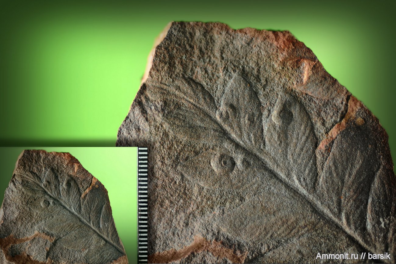 "Спиралевидные образования" похожи на отпечатки раковин аннелидоподобных организмов, поселишихся на листе после его попадания в воду. | ||||||