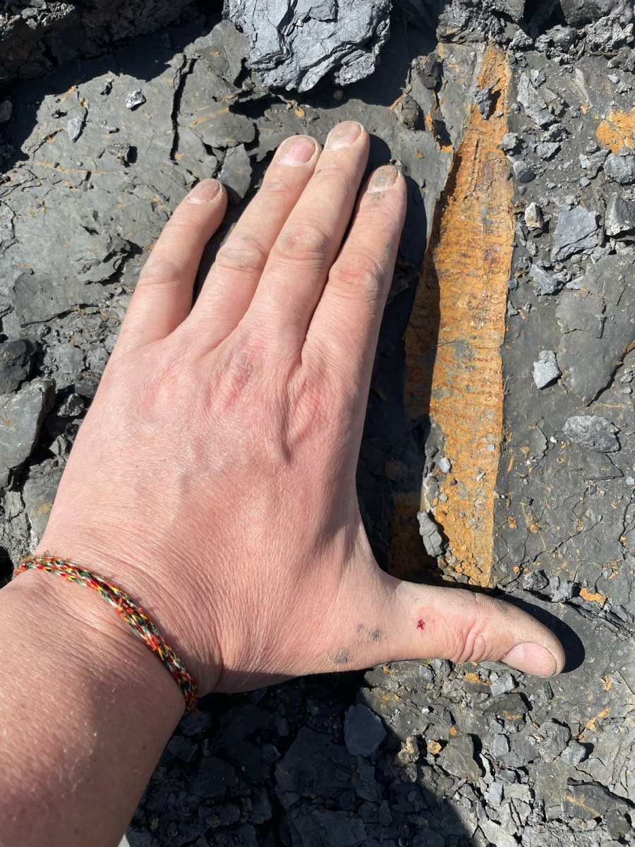 А это Фото контроотпечатка в момент находки - он как раз не разбился и остался жить в карьере.