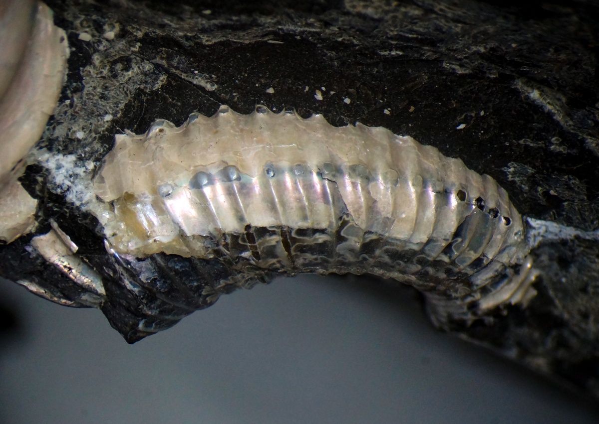 Перебирая собранные образцы сидерита, на одном из кусков и был обнаружен фрагмент аммонита.