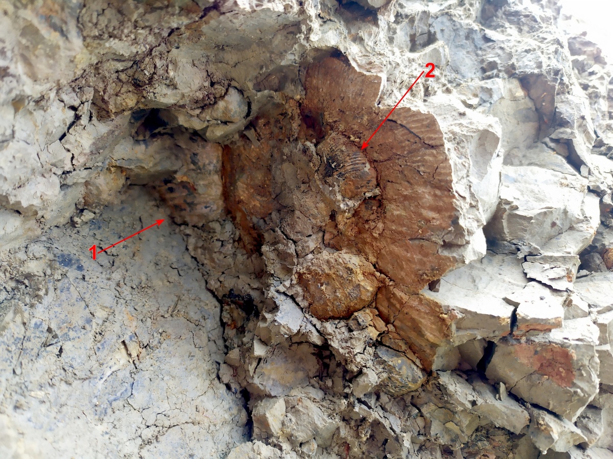 Фото аммонита в глине на месте обнаружения