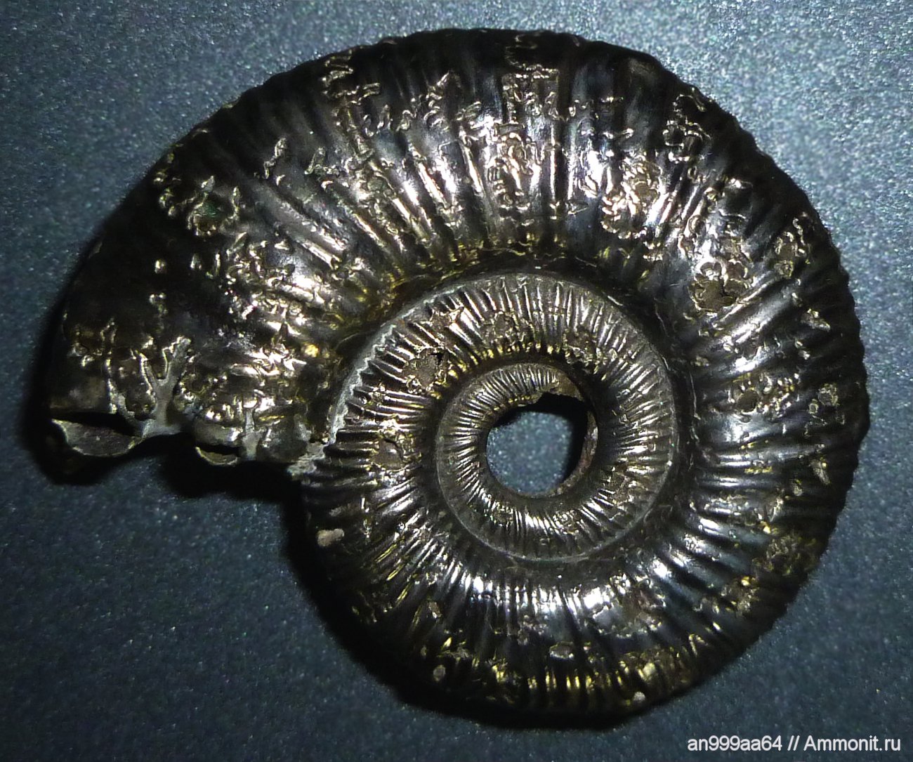 аммонит Binatisphinctes размером 4,5 на 3,6 см, получен по обмену, спасибо Динозавру!