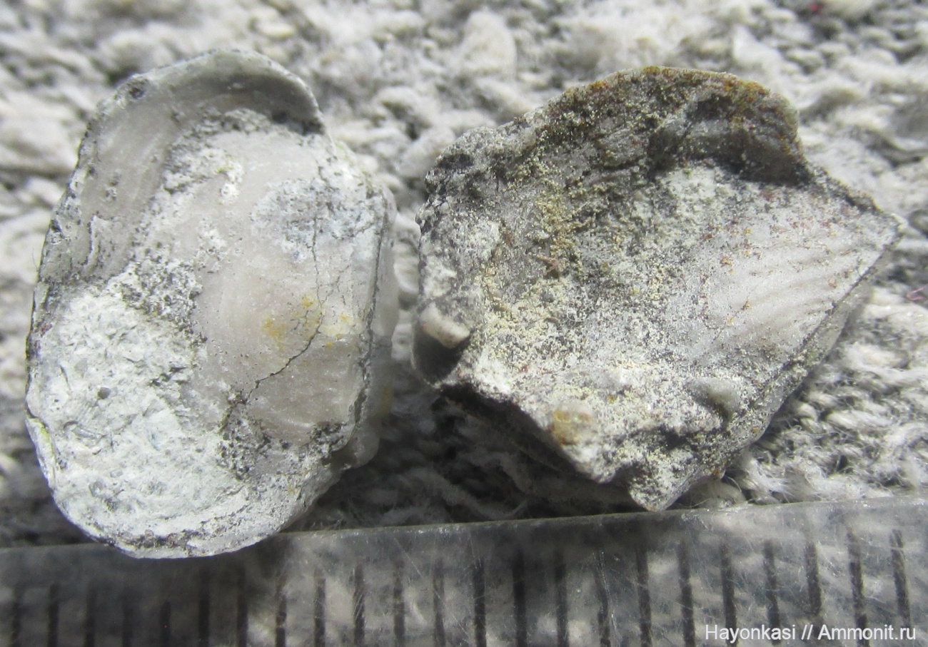 Брахиоподы Irboskites fixatus с сохранившимися верхними створками. В таком виде они попадаются редко: нижней створкой Irboskites прирастали к субстрату, и она сохранялась хорошо, верхняя же, тонкая и плоская, легко отваливалась и быстро разрушалась. Эти две брахиоподы (за счёт выгнутой формы?) сохранили свои "крышечки".