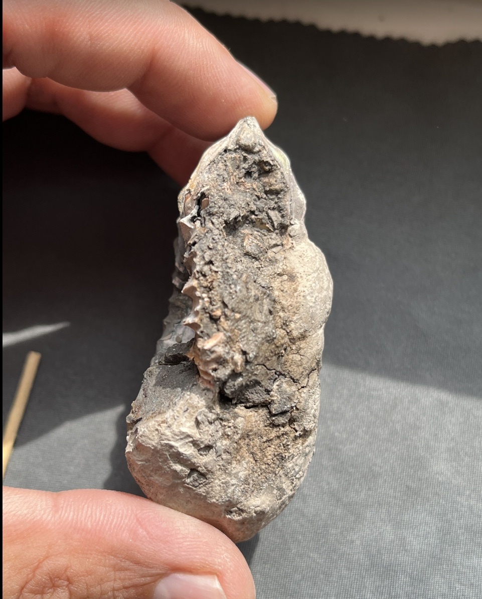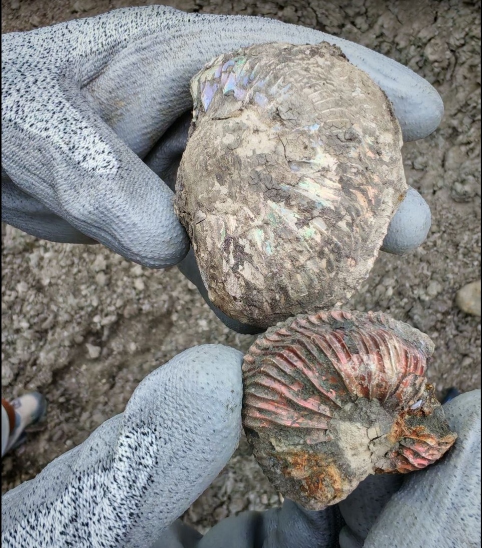 не думал, что можно найти приличных аммонитов в Пирочах, но вот были вытащены мной и Иваном парочка из стенки (и третий маленький, но целый, под ней). Мой экземпляр заместил фрагмокон пиритом, но не до конца - поэтому часть была срезана ковшом экскаватора. А вот пупок был закрыт очень твердой породой с пиритовыми прожилками. Доп.Фото, Доп.Фото2, Доп.Фото3, на месте находки