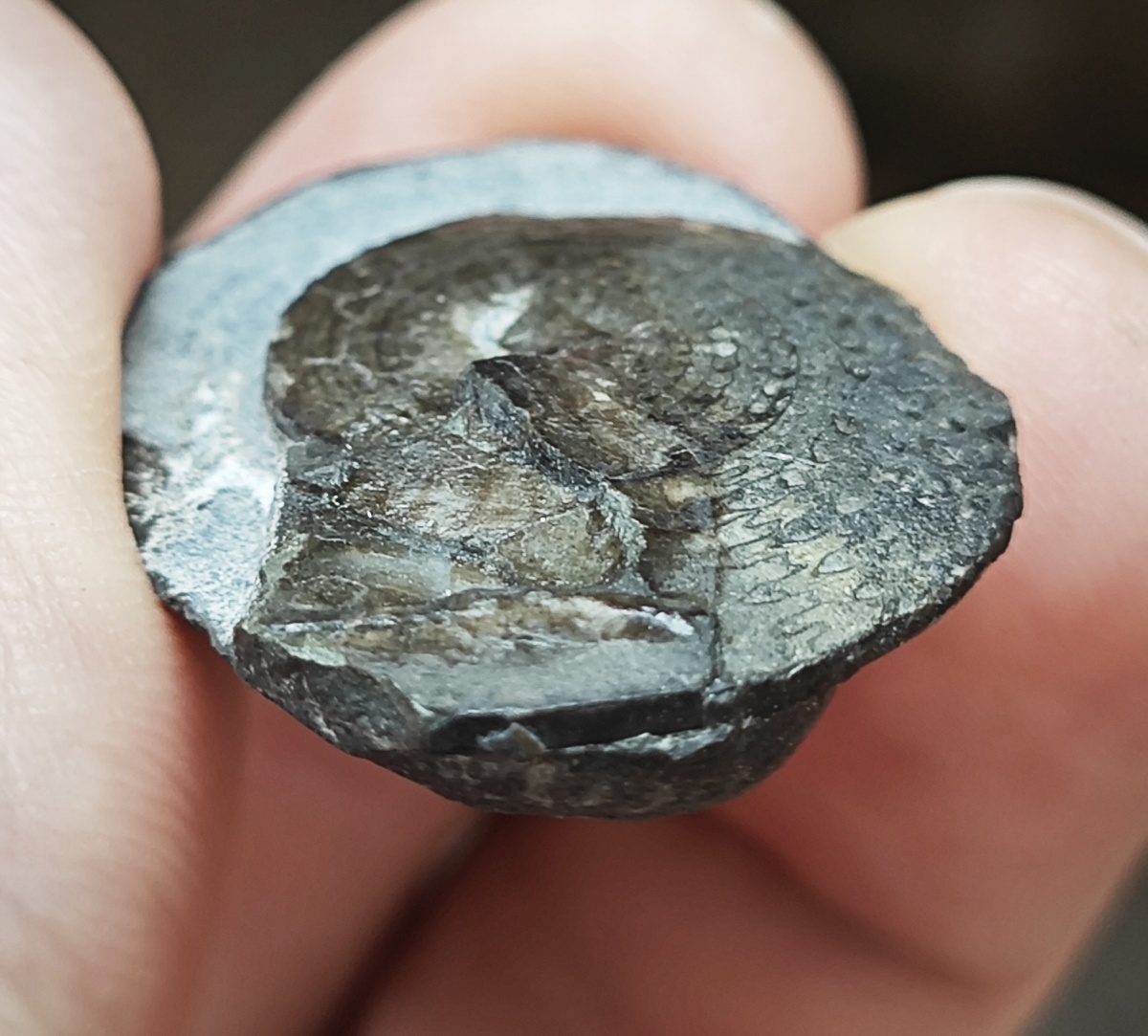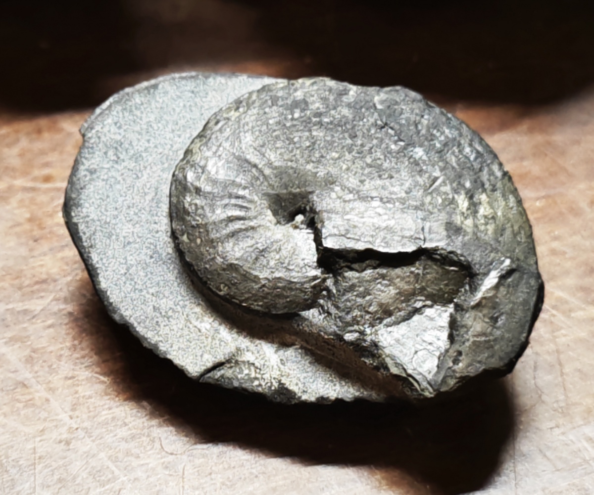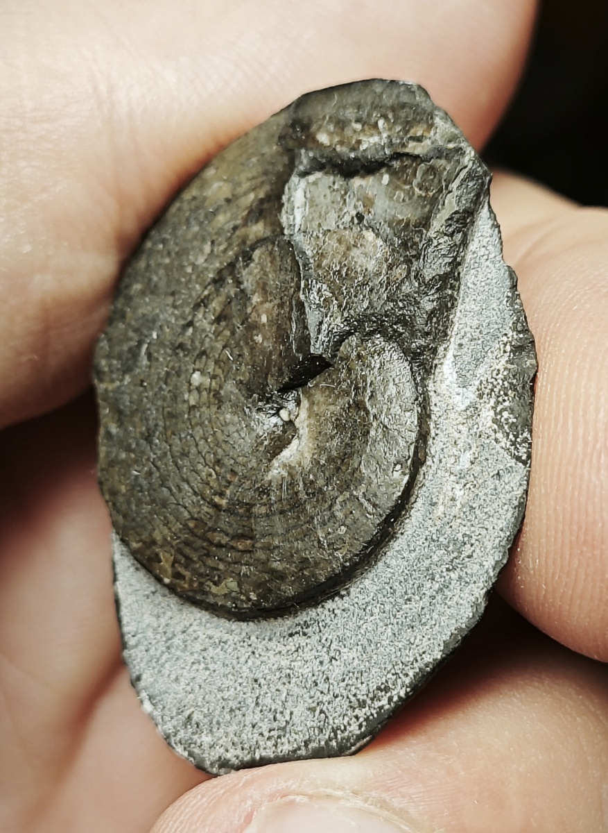 Фрагмокон Cordillerites aff. concinnus Kiparisova с частью смятой жилой камеры в конкреции