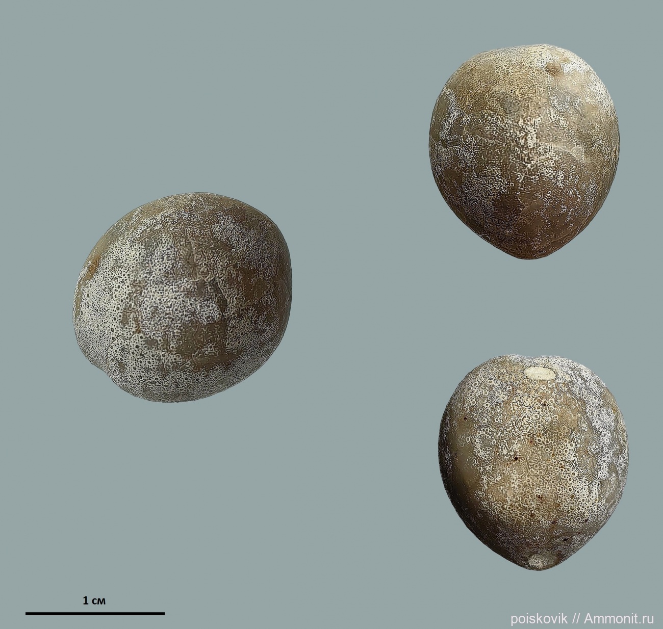 Неправильный морской еж Offaster (в 3-х проекциях) из верхне-меловых пород Белогорского района.