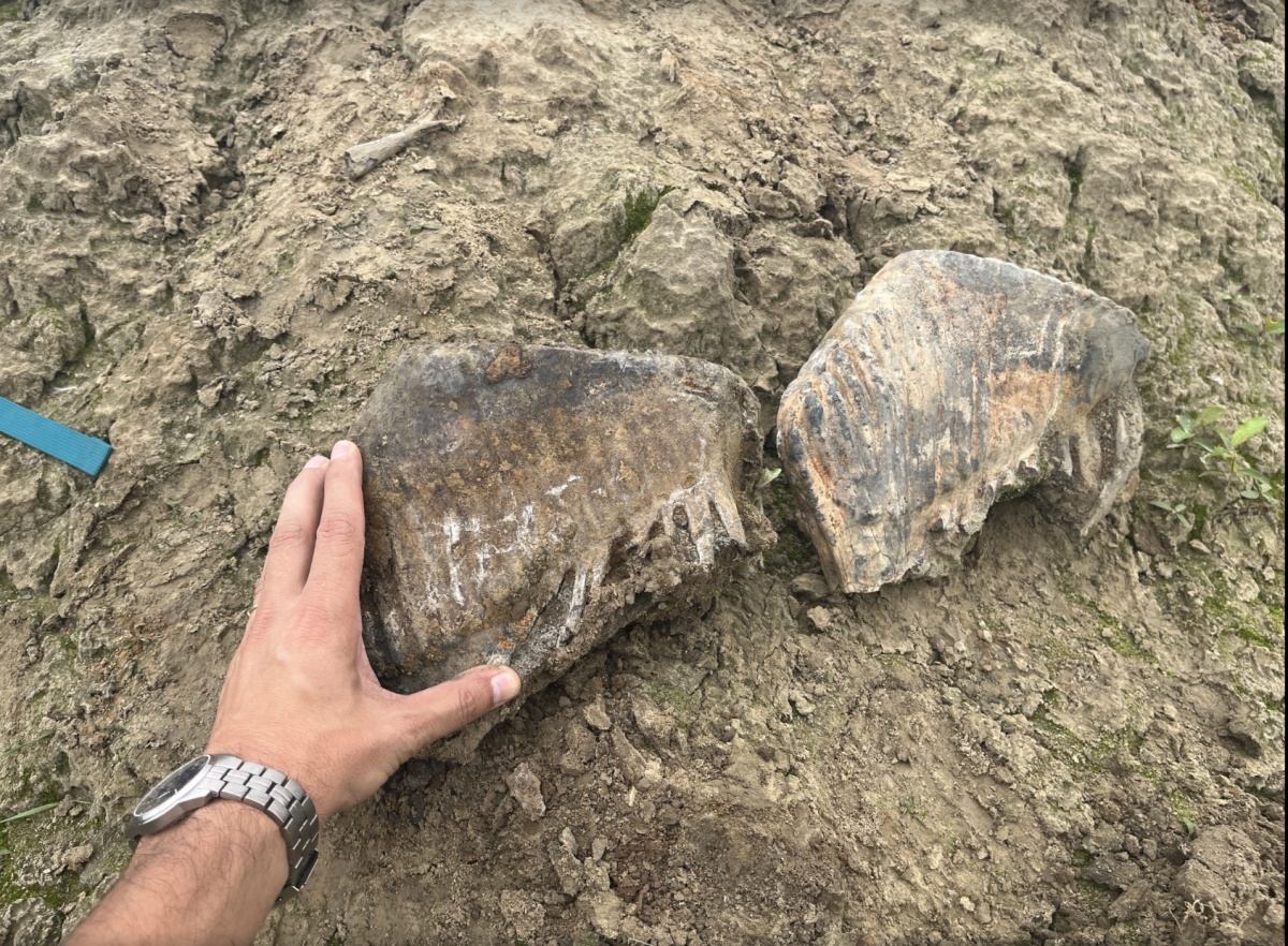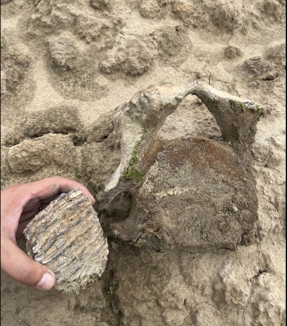 Вот такой неожиданный сюрприз в отвалах вскрыши подмосковного карьера - зубы, позвонок, обломки костей и бивней! Все разбросано по площади примерно 30х30 метров в разных отвальных кучках. Локацию передал в ПИН, а сам забрал вот этот набор с поверхности. Приложу доп. фото с места и видео с уже помытыми образцами. (оба зуба лежали рядышком на расстоянии 20 см.)