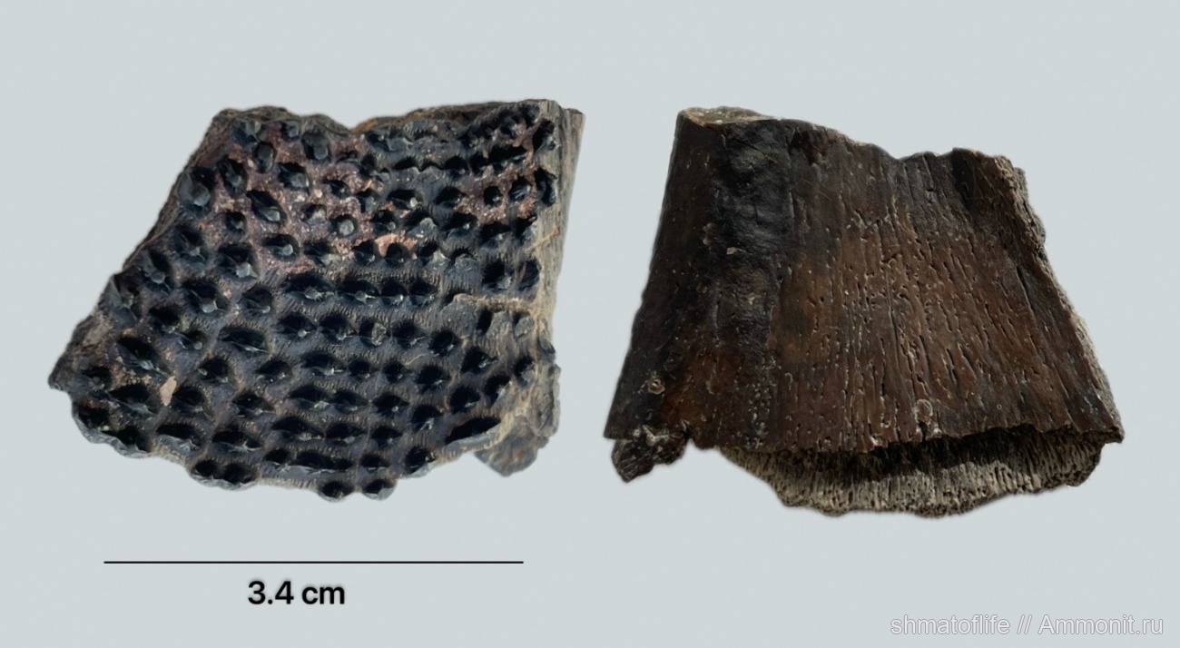 Найдено в Борщевском карьере, с одной стороны шипы, а с другой костная структура