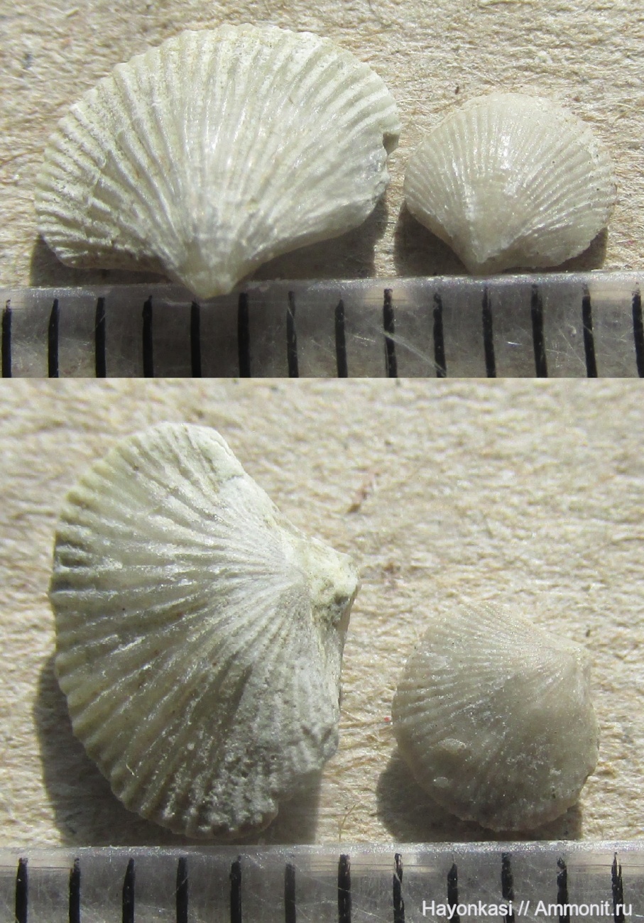 Да, похожи на местных Ринхонеллид, и ювенильных Ринхонеллид тут очень много. Но у этих форма раковины чуть-чуть не такая, и рёбра тоньше. Из того, что тут водится, больше всего походят на Атрипид. | ||||||