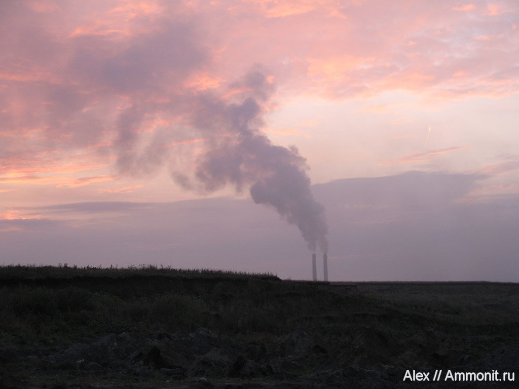 Трубы завода "Михайловцемент" на закате, лето 2007 года. Этот дым виден за много километров. Вблизи видно, как пылевые частицы из этих облаков оседают на соседние населенные пункты.