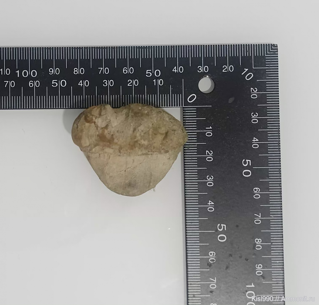 По одному не четкому ракурсу очень трудно судить, нужно добавить еще несколько ракурсов (сбоку, с торца, с обратной стороны), поближе и почетче. Линейку лучше убрать, на нее, а не на образец, камера фокусируется. По своему опыту могу сказать, что окатанные обломки аммонитов в Переборах приобретают причудливые формы. | ||||||