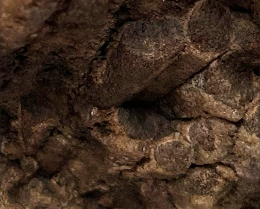 Обращает на себя внимание, что диаметр «ходов» плавно увеличивается по длине образца: диаметр «ходов» в самом низу образца - около 1 мм, а вверху - около 1 см.