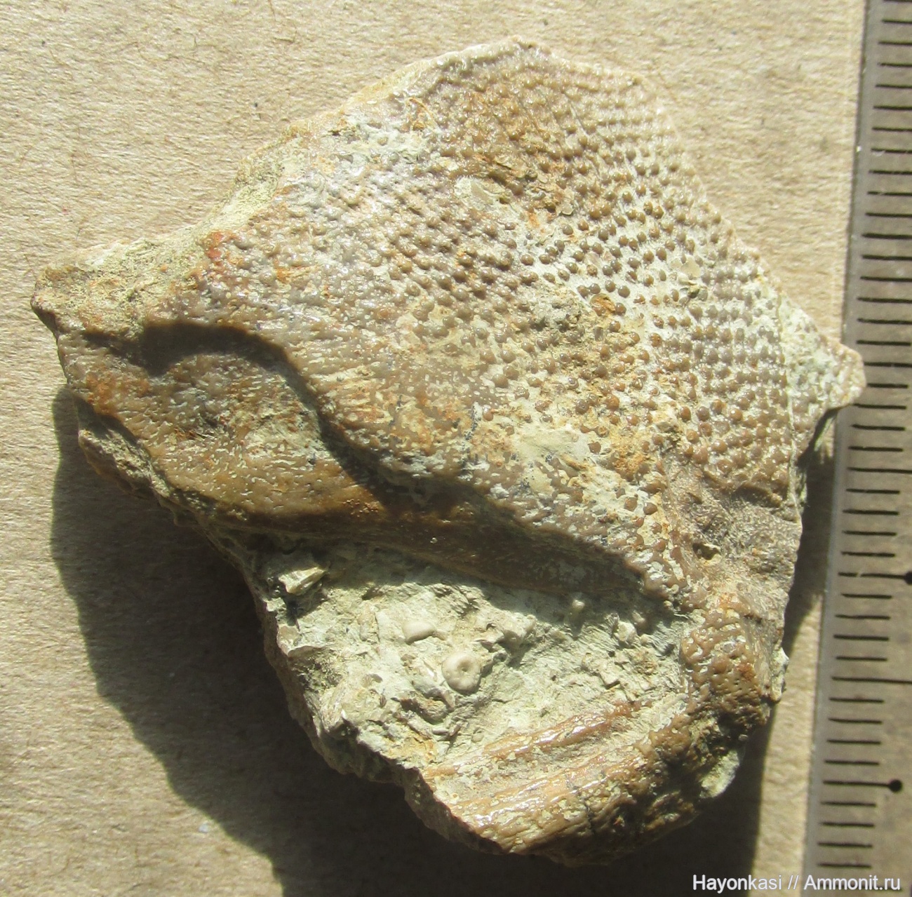 Фрагмент покровной пластины плакодермы Arthrodira (Plourdosteus sp.).