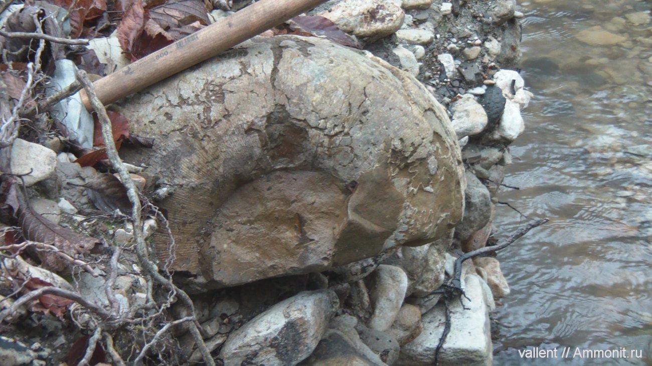 Аммонит найден на притоке реки Ардон в декабре 2010 г. Там его и оставил, поскольку плохая сохранность. Вид не могу определить.