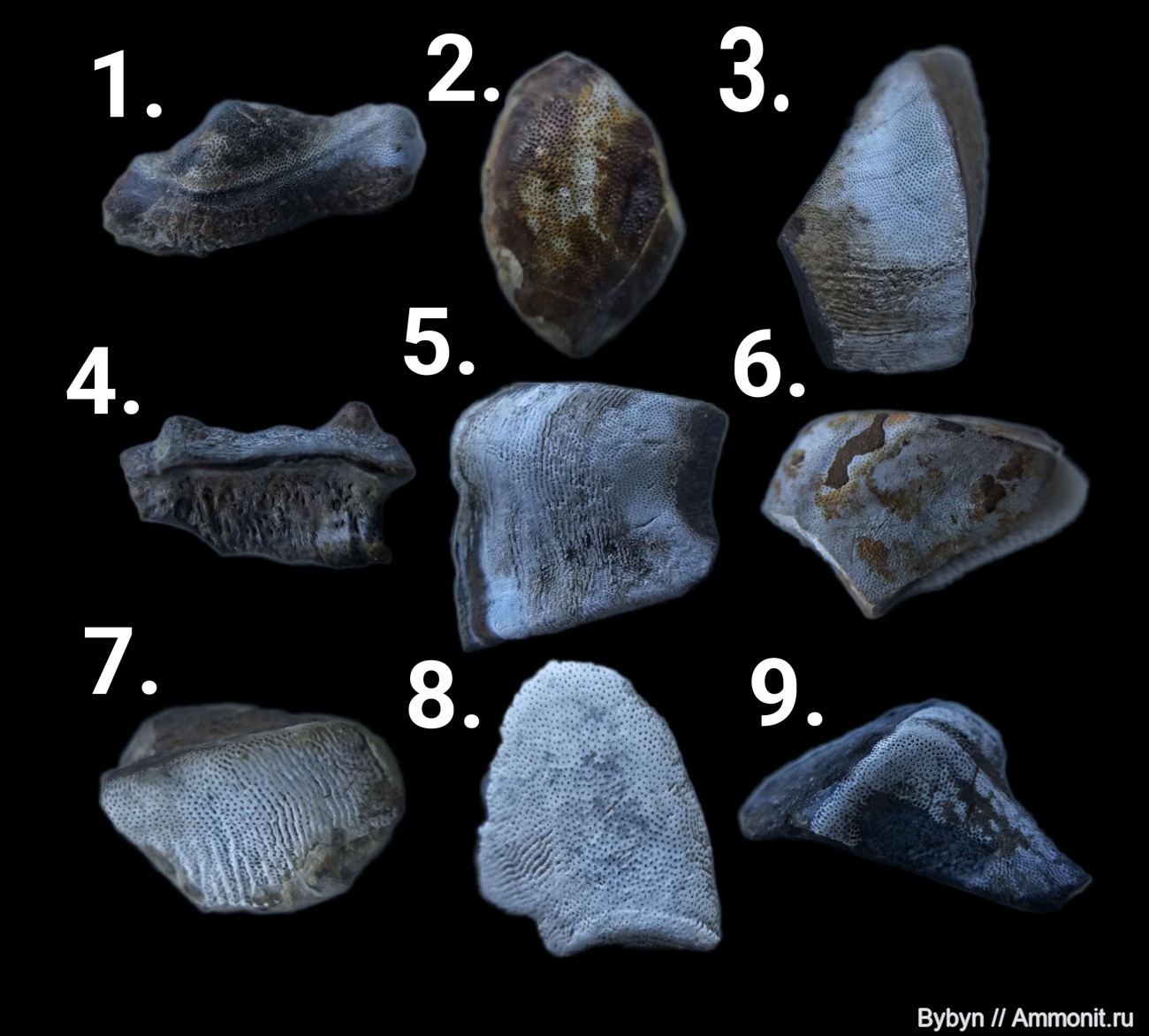 2 - ближе к Sandalodus, всё что дальше, исключая 4, фрагменты