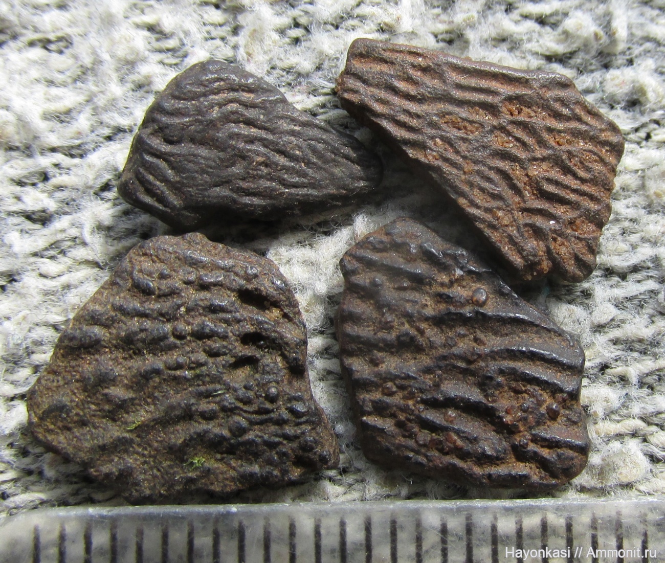 Обломки чешуи лопастепёрых рыб, предположительно Glyptolepis.