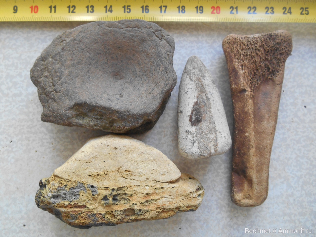 косточка птички длинна 9 см вероятно современник мамонтов как зовут хз позвонок ихтеозавра сильно обломан толщина 2см нижния косточка неоприделяемый фрагмент ну и белемнит для эстетики