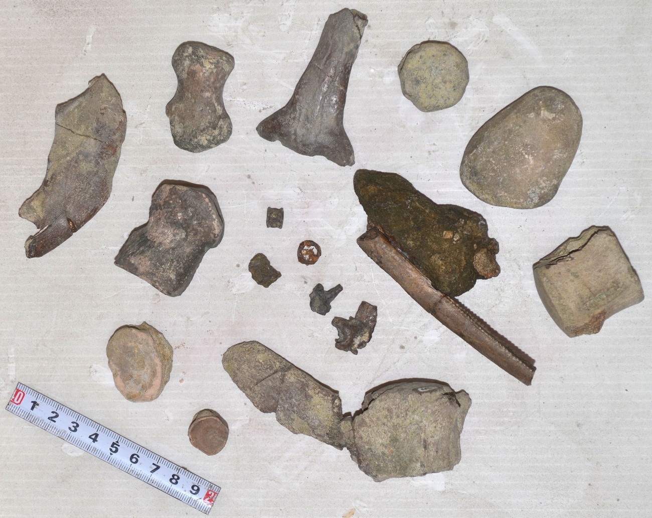 Пензенская область. село Малая Сердоба. Ручей Белый ключ. Верхний мел. Кампанский ярус. Местонахождение костей в фосфоритоврой гальке. Кости и зубы плезиозавров,мозозавров. Многочисленные зубы и позвонки акул. Редкие кости птерозавров.