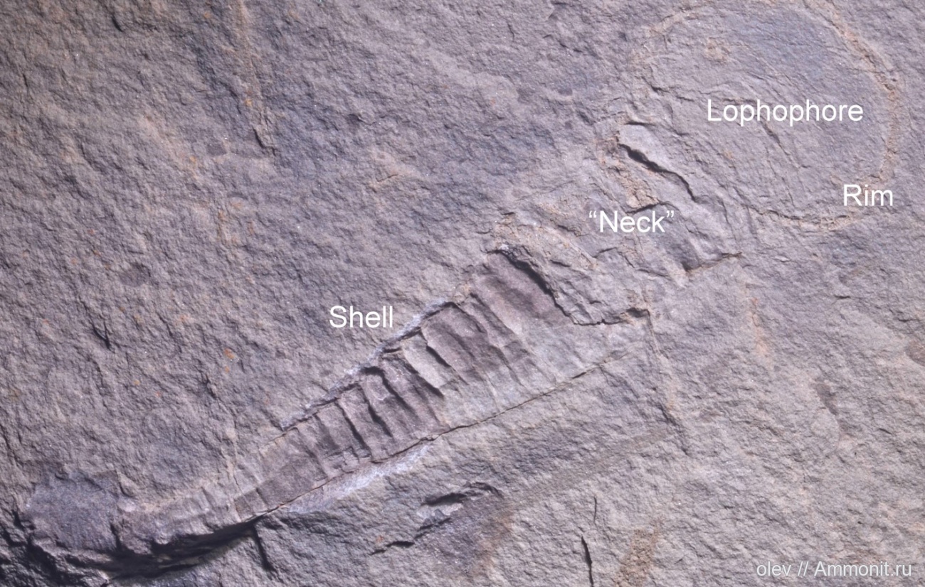 Cornulites sp. с сохранившимся лофофором из нижнего силура Китая.