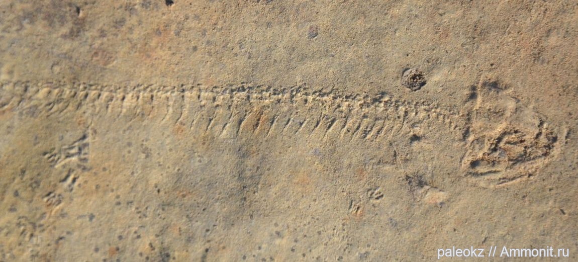 Амфибия Utegenia shpinari из отряда Сеймурияморфы. Длина фрагмента 9см. Ранняя пермь, около 290-280 млн лет. Алматинская область, Чу-Илийские горы