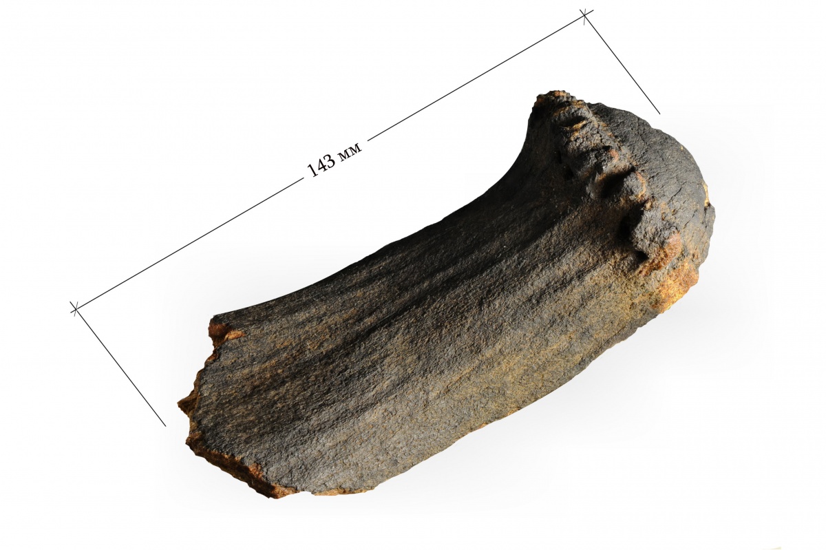 Фрагмент пястной кости большерогого оленя. Из нижнего течения Дона. Богата земля ростовская, вот так незаметно и собрался целый зоопарк: носорог шерстистый, носорог неопределенный( может быть стефаноринус (Stephanorhinus), южный слон, мамонт, пещерный медведь, лошадь, степной бизон.