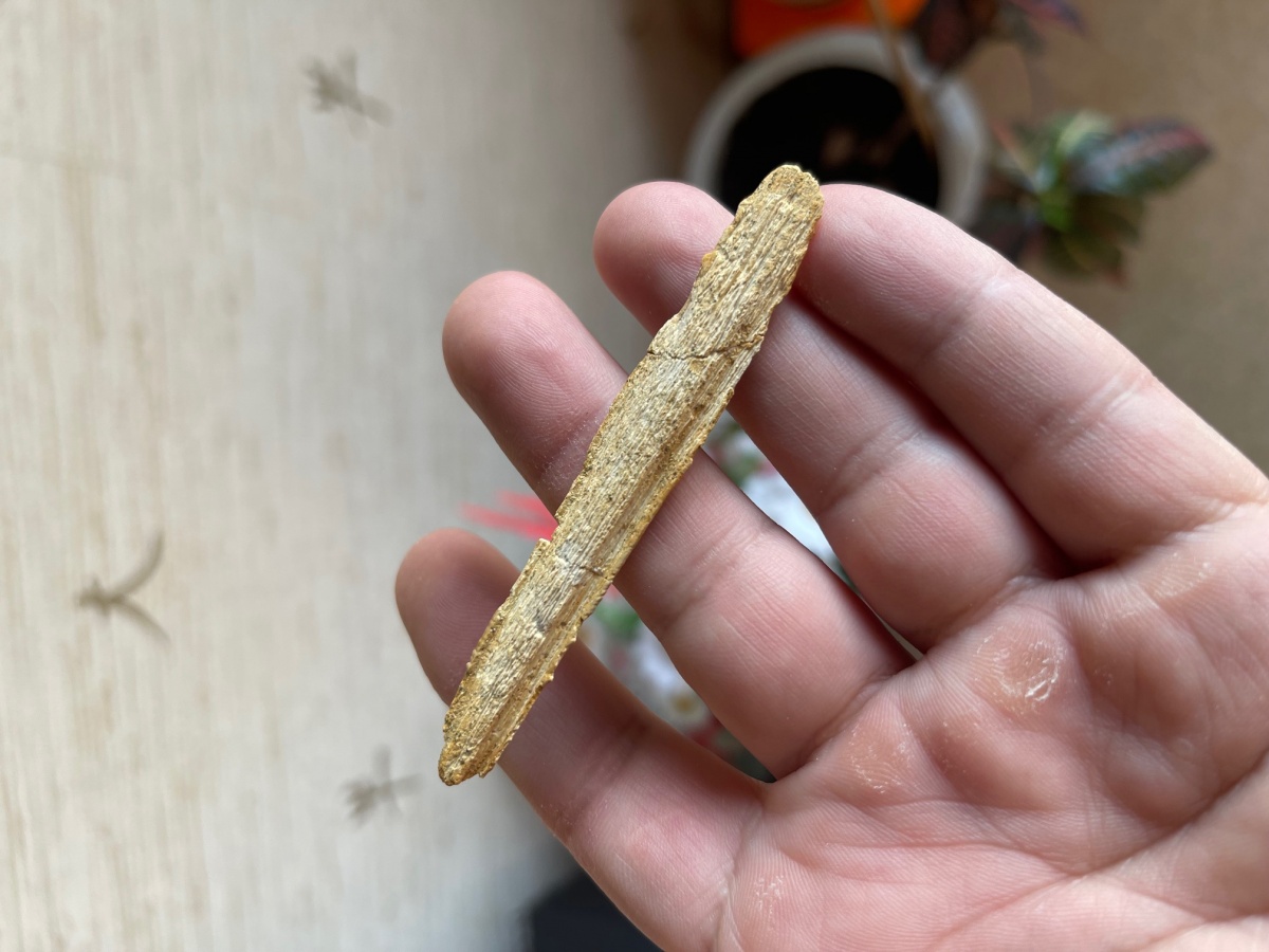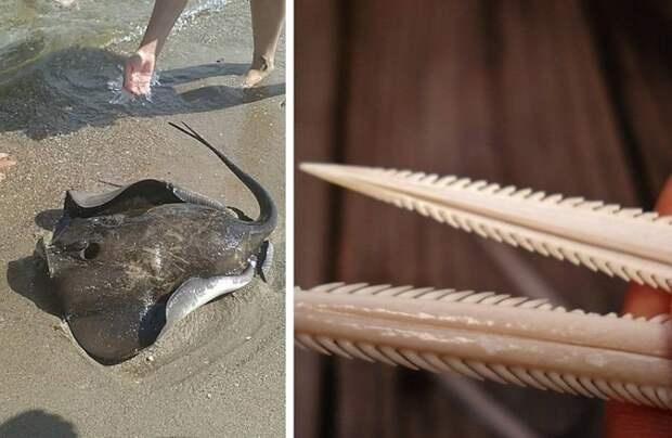 Необычная, для меня, находка. Впервые попался хвостовой шип ската. Современные скаты тоже имеют такое оружие. Можно вспомнить знаменитого австралийского натуралиста Стива Ирвина, который погиб от удара ската-хвостокола в область сердца во время съёмок.
