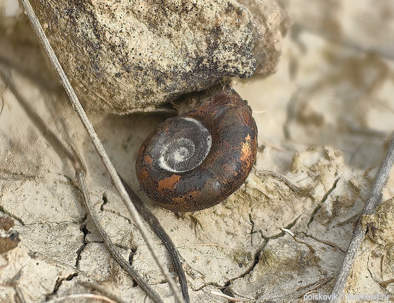 Маленький (диаметр 12 мм) ожелезненный аммонит Costidiscus в верхне-барремских глинах Верхоречья