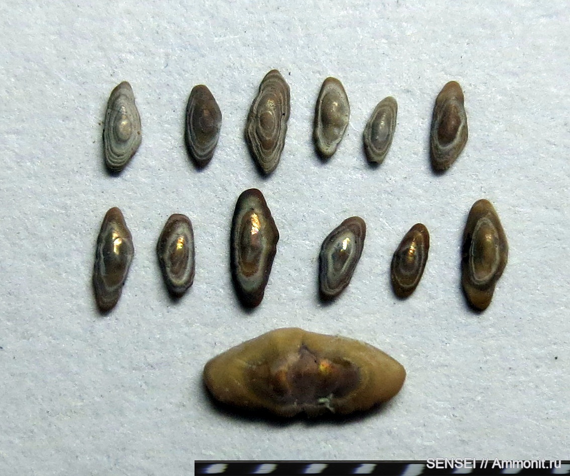 Изредка попадаются отолиты сарматских рыб люксовой сохранности, с отчётливо видимыми сезонными кольцами наростания.
