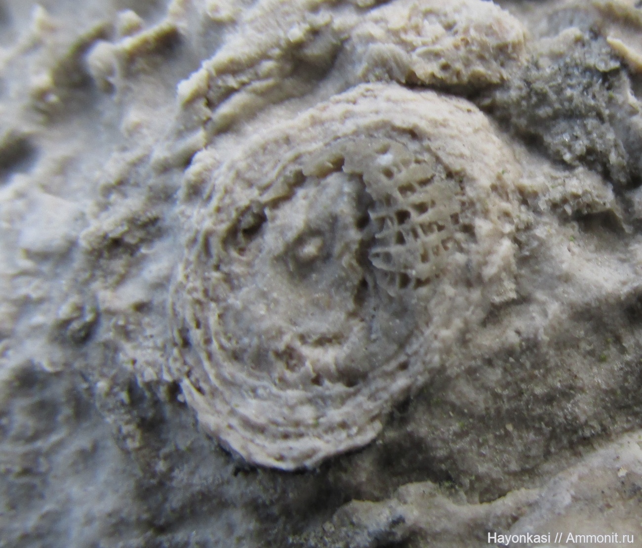 Небольшая колония Stromatoporoidea на обломке коралла Rugosa в облицовке крепостной стены. Образец непривлекательный, но довольно редкий - вторая за 4 года Ругоза и первый наблюдаемый случай "взаимодействия" псковских строматопоратов с кораллами.