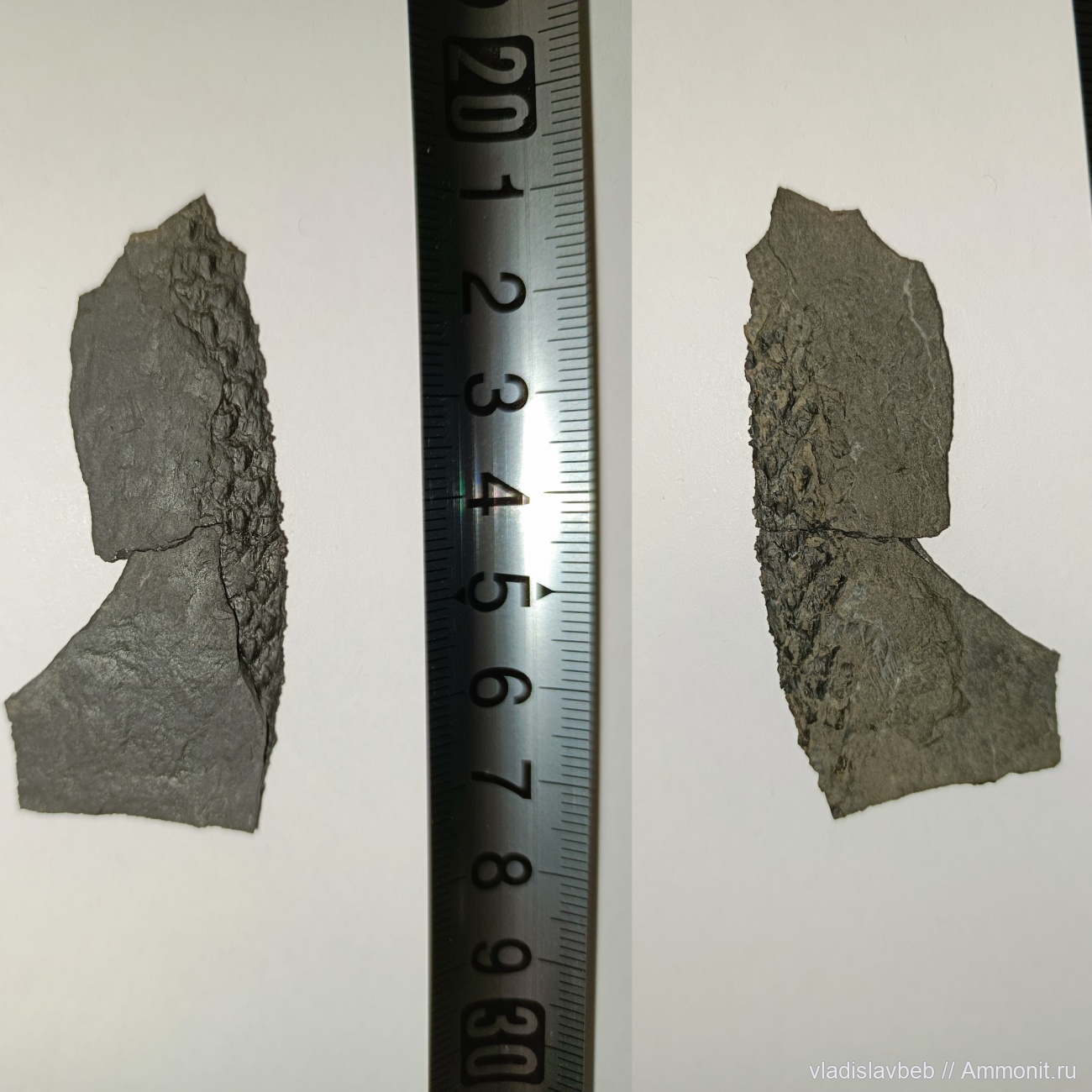 Спороносная шишка Sphenophyllum sp. Откололась от общей плиты с побегами и мутовками на месте обнаружения (почти идеально :) ). Решил хранить в таком состоянии рядом с родной плиткой.