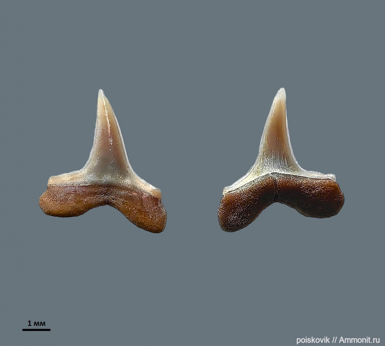 Зуб акулы (в 2-х проекциях) из палеогеновых обнажений г. Айлянма-Кая
