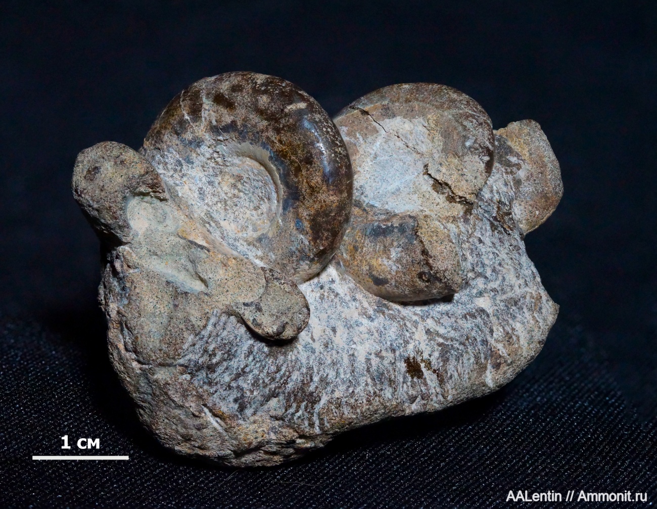 Конкрецию с четырьмя аммонитами Kachpurites fulgens найдена в 1 м от берега в воде.