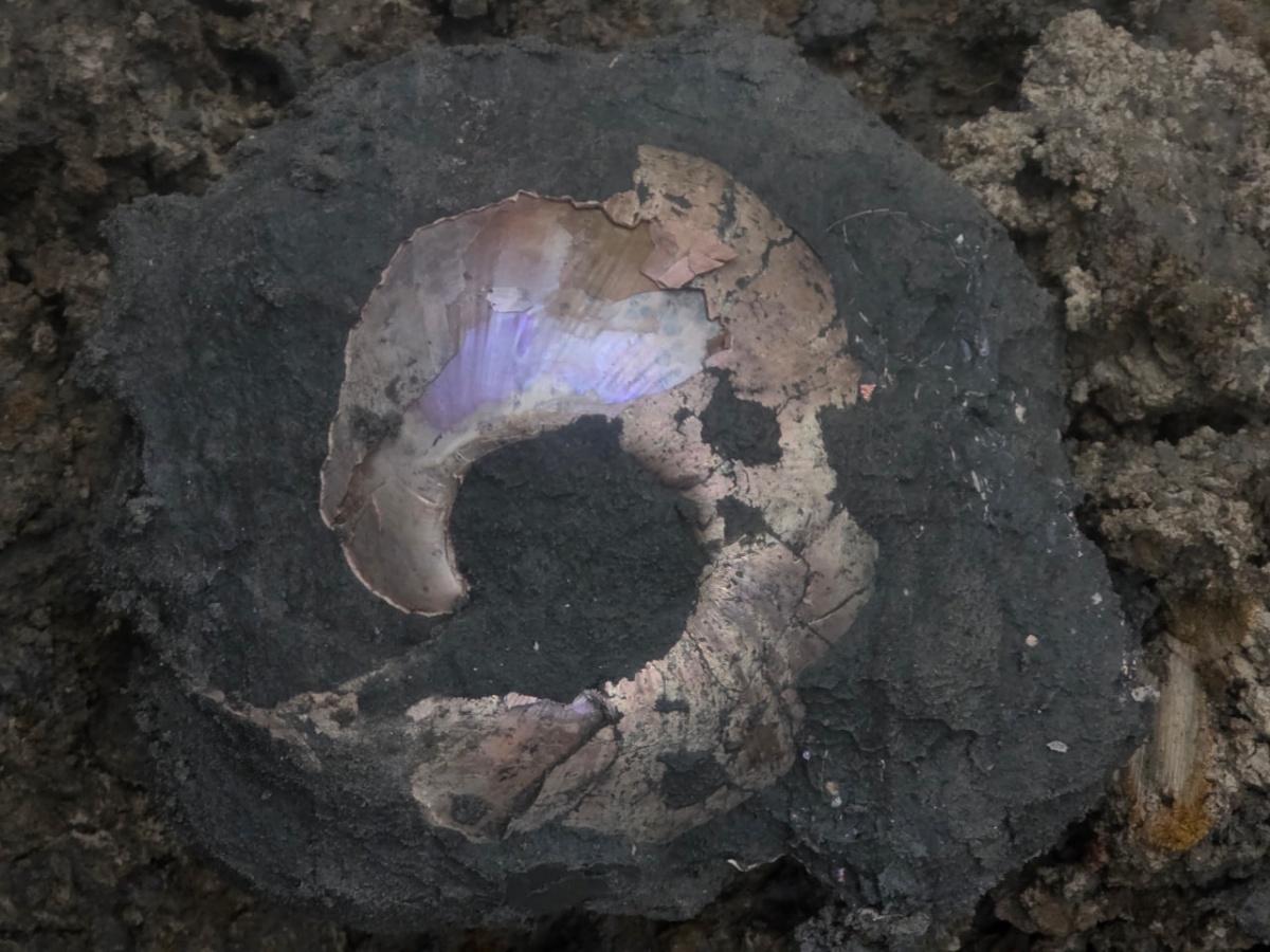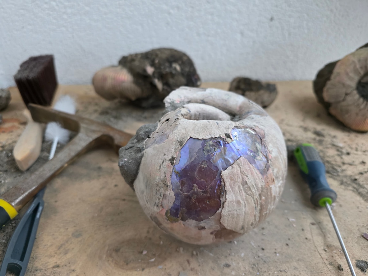 Выкопан осенью. Изначальный диаметр около 20 сантиметров, но часть жилой камеры сохранить не удалось. Фиолетовый отлив за несколько месяцев практически не исчез