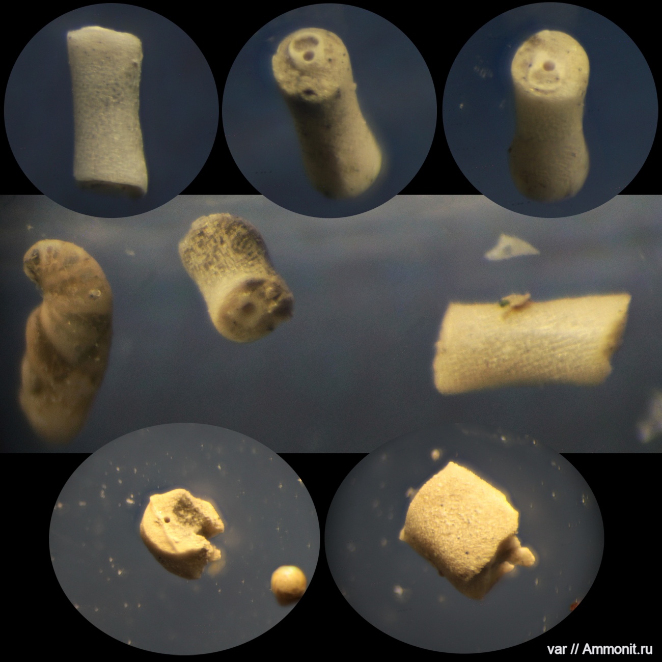 Среди микроокаменелостей позднеюрских глин Городищенского разреза довольно часто встречаются объекты размером не более 1.0-1.5 мм, скорее всего представляющие собой обломки чего-то большего. Как правило это цилиндры с более узкой средней частью и отверстием (или трубкой), пронизывающим цилиндр по продольной оси. Иногда форма может быть более сложной, неправильной. Структурой напоминают нечто ажурное, вспененное. На фото такое сходство менее заметно. Оно особенно бросается в глаза при рассматривании в микроскоп.