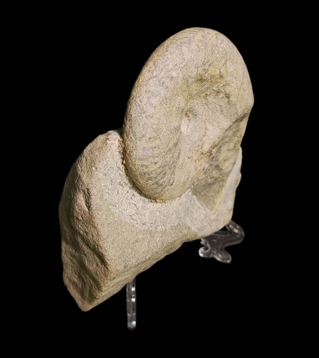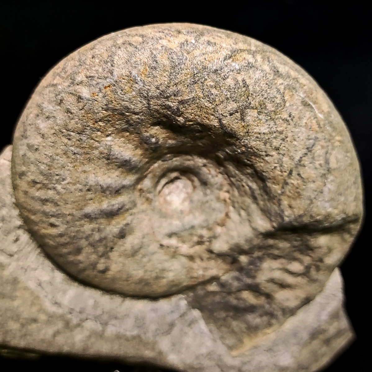 Этот образец был найден 5.04.2025 на берегу Волги а р-н Кашпира. На "лицевой" стороне "лежит" ядро Аммонита craspedites с жилой камерой , в которой видны ходы илоедов Фото ихнофоссилии. Аммон покрыт бутиралью для блеска, также я сделал "окантовку" вокруг для контраста с породой.