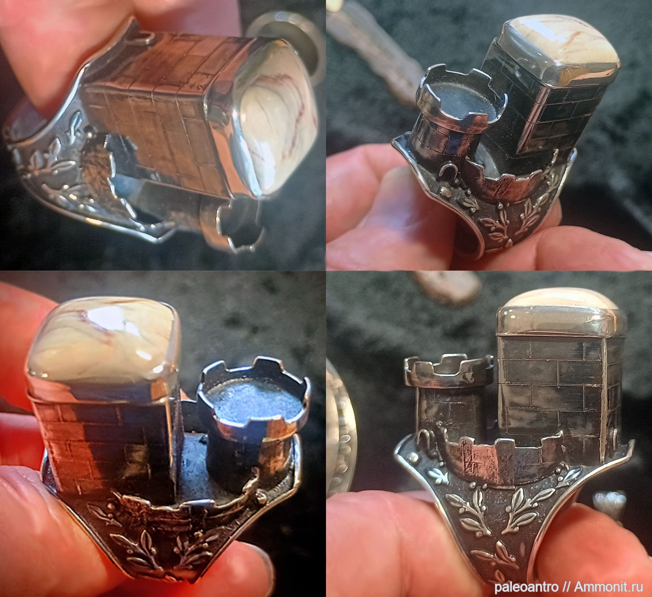 Перстень в виде замка, изготовленный мною из кабошона окаменевшего пермского тропического леса Хемниц, оправленный в серебро, к международному ювелирному музейному проекту 2013 года, посвящённому хемницкому окаменевшему лесу и названный «Хемницкий окаменевший лес, как художественное и образовательное сырьё". Цель проекта: показать хемницкое окаменевшее пермское дерево, как уникальный материал для современного ювелирного и художественного ремесла, объединяя науку, историю и творчество. Перстень был мною подарен Музею естественной истории города Хемниц. Во время презентации демонстрировался мой фильм на тему изготовления мною украшений из окаменевшего дерева и параллельно я демонстрировал изготовление кабошонов из окаменевшего дерева.