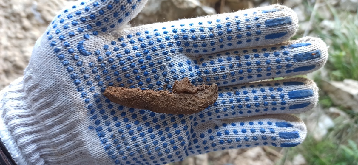 Нижняя челюсть лисицы. Фото на месте находки.
