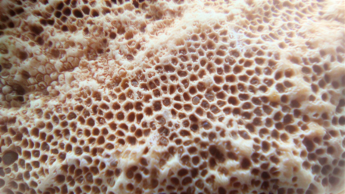При детальном рассмотрении строения колоний можно заметить, что некоторые места ячеек заполнены и покрыты карбонатным илом, уже затвердевшим. Есть свободные места, в некоторых затесались зёрна кварца.
