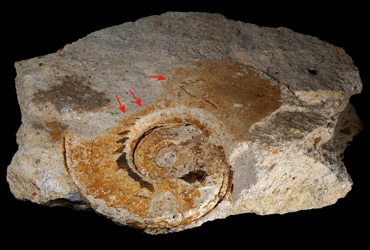Да, вентральный укус! У наутилид их известно очень мало. В литературе описан всего один случай, на мой взгляд крайне сомнительный, потому что след укуса там у них на фрагмоконе. У нас на сайте есть еще вот такой Domatoceras Целый слепок раковины Domatoceras mosquense Tzw., уже с настоящим вентральным укусом. И еще один образец наутилиды из альба Северного Кавказа есть у меня. И на этом всё. Так что просто отличная находка!