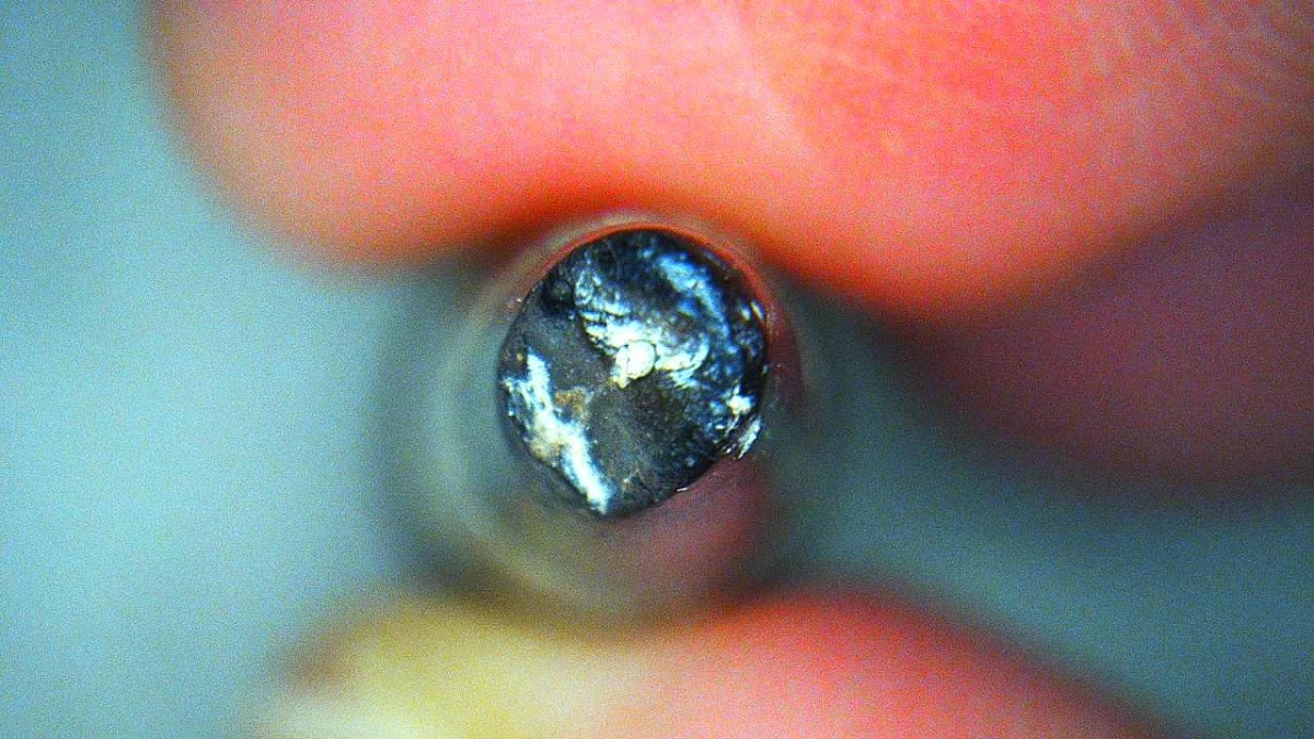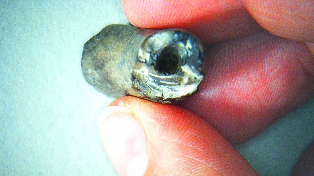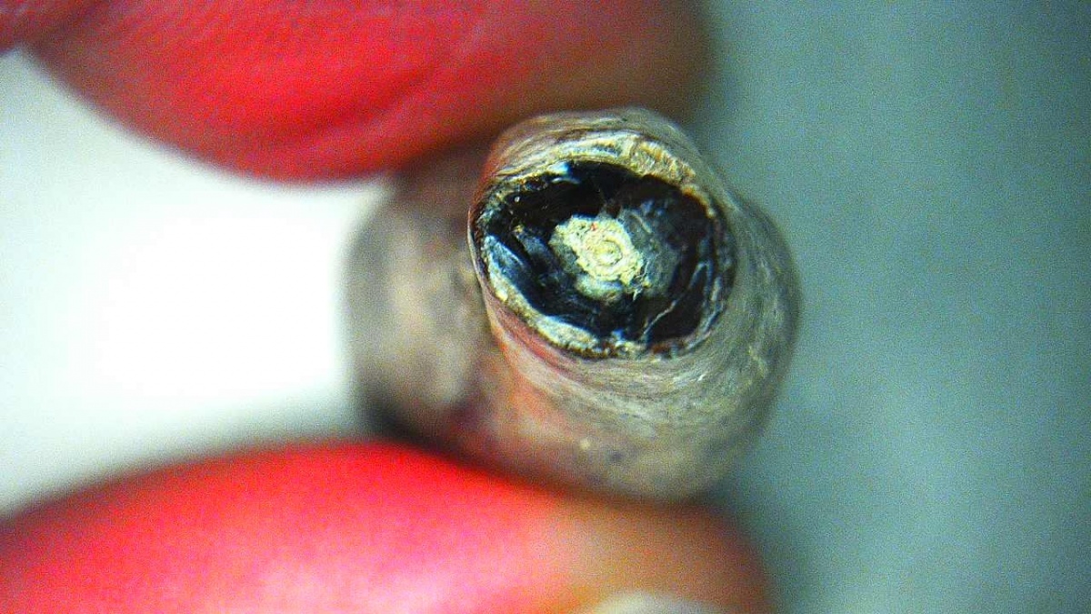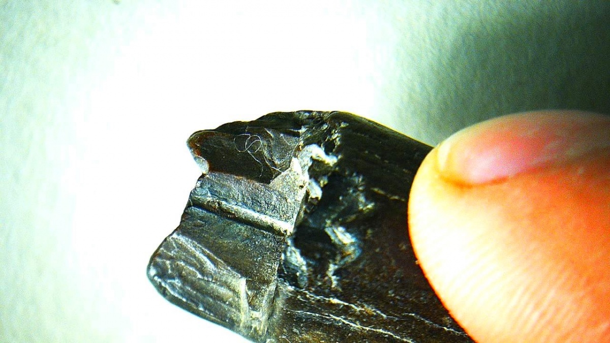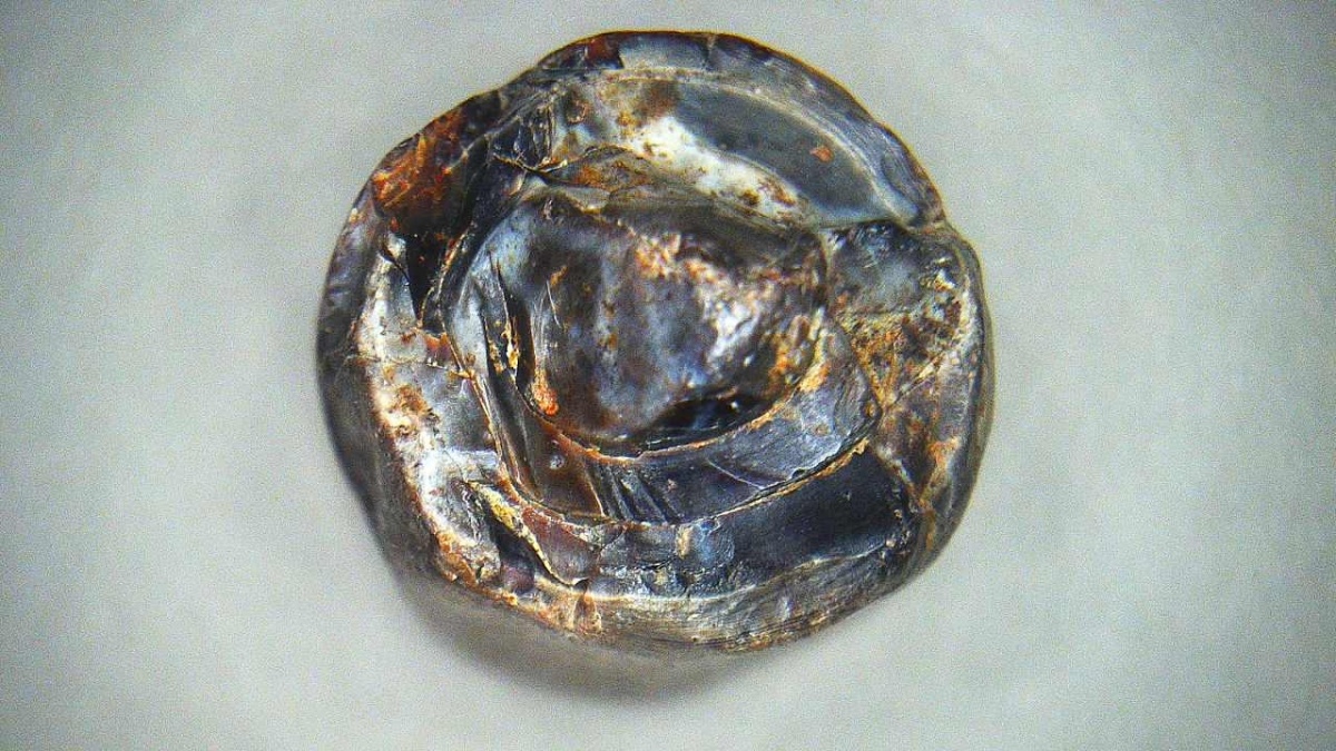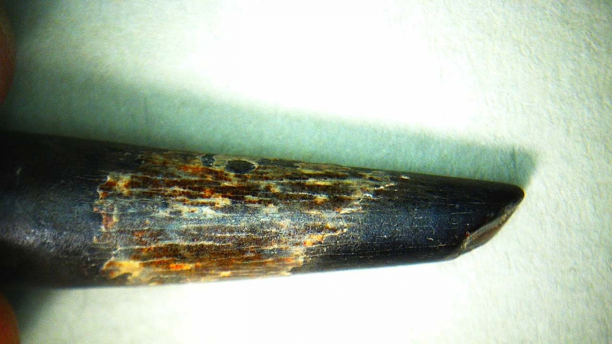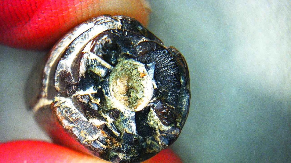 На торцах всех зубов отчётливо виден центральный канал и слоистость "годичные кольца", На поверхности зуба №2 видна фактура коронки.