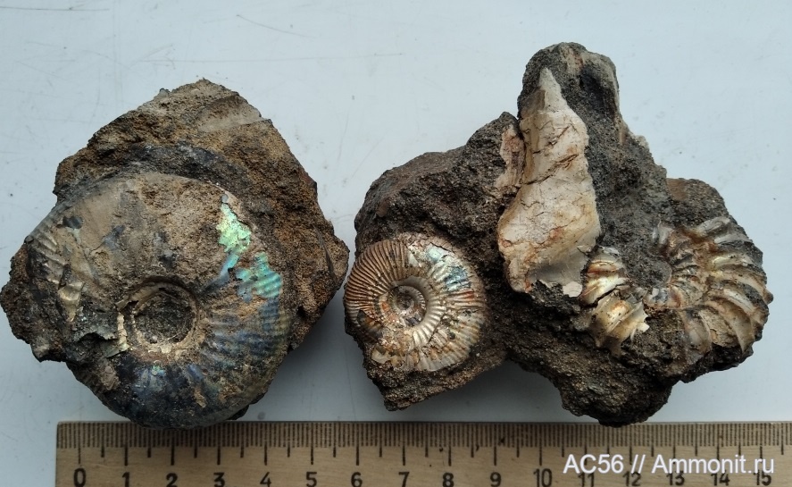 Oчень редко встречаемые аммониты в низах берриаса. Справа мелкая Praetollia - на породе вместе с Riasanites swistowianus
