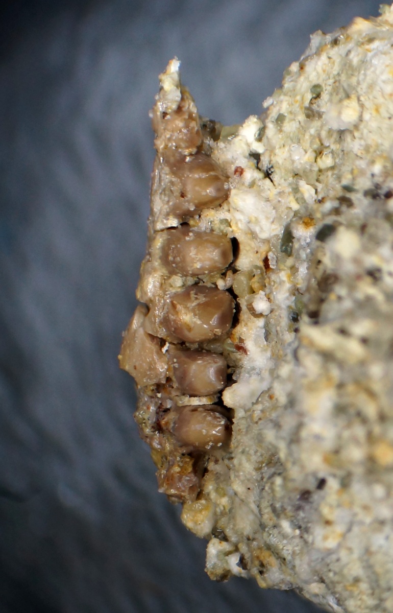 В ходе разламывания песчано-глиняного конгломерата нижнего триаса, открылся фрагмент челюсти с зубами рептилии проколофона (Procolophon). Конгломерат взят из оврага в районе села Яблоновый овраг.
