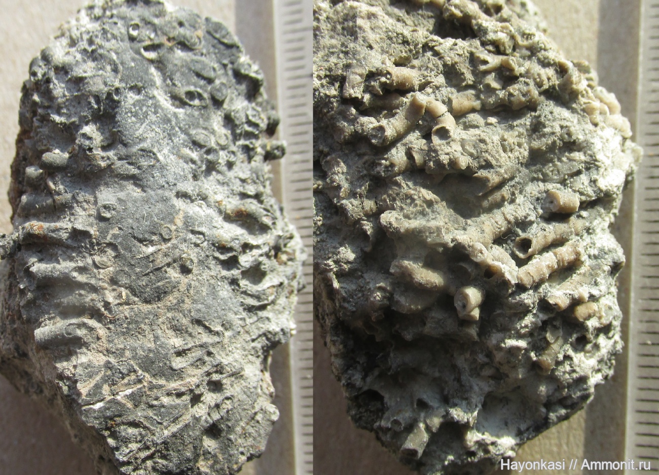 Фрагмент твёрдого морского дна, включающий в себя более древнюю колонию кораллов Tabulata.
