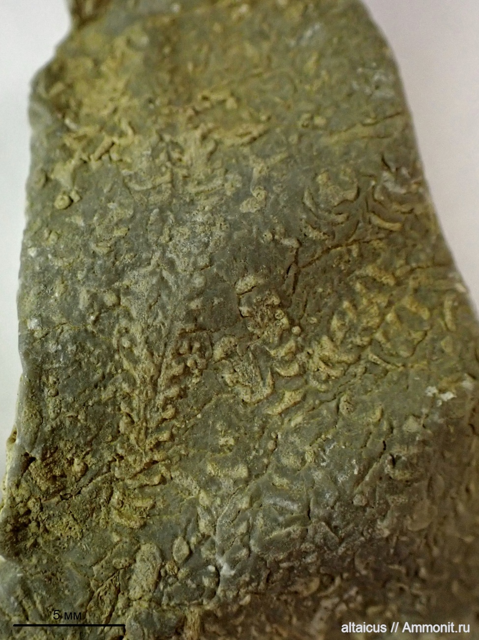Предположительно, граптолиты, хотя и крупноваты. Видно, что самый длинный образец (слева) ветвится. Алтайский край, Курьинский район.
