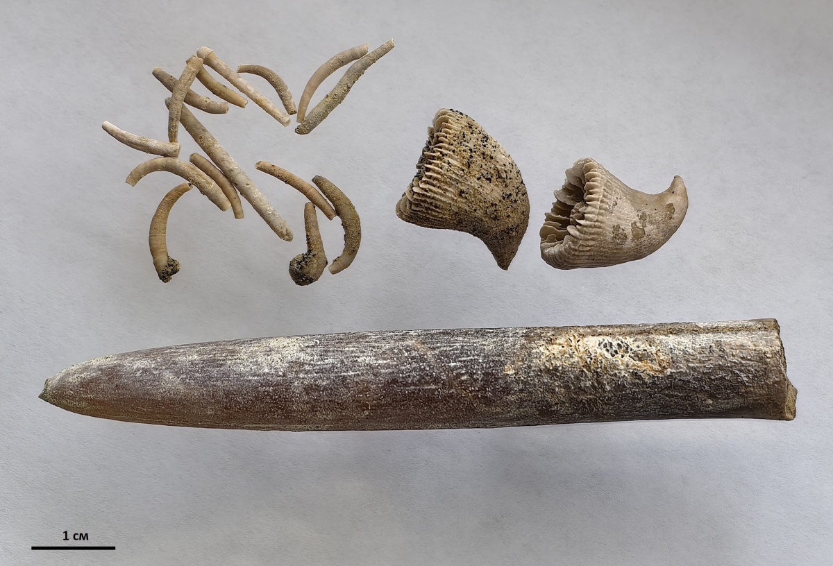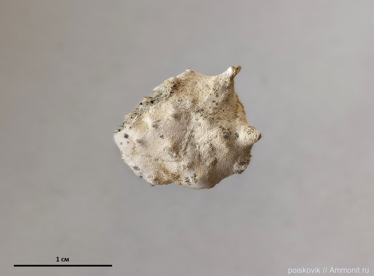 Панцирь краба найден в осыпях верхне-маастрихтских глауконитовых пород юго-восточнее горы Ак-Кая (вид сбоку - см.Фото). Сопутствующая фауна: белемниты, серпулы, иглы морских ежей, кораллиты (см.Фото).