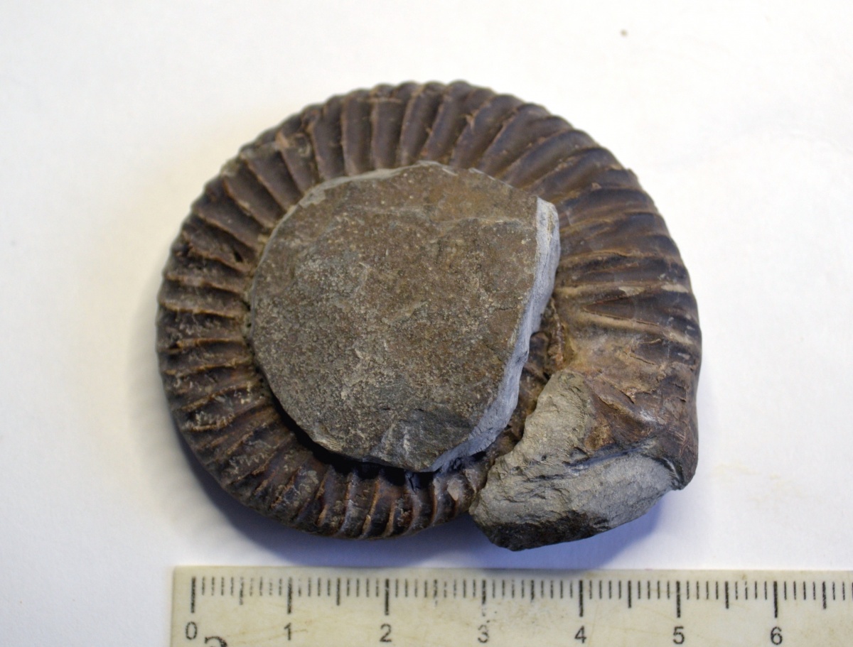 Аммонит найден в Урупском районе, КЧР. Из десятка образцов это единственный с сохранившимся устьем.