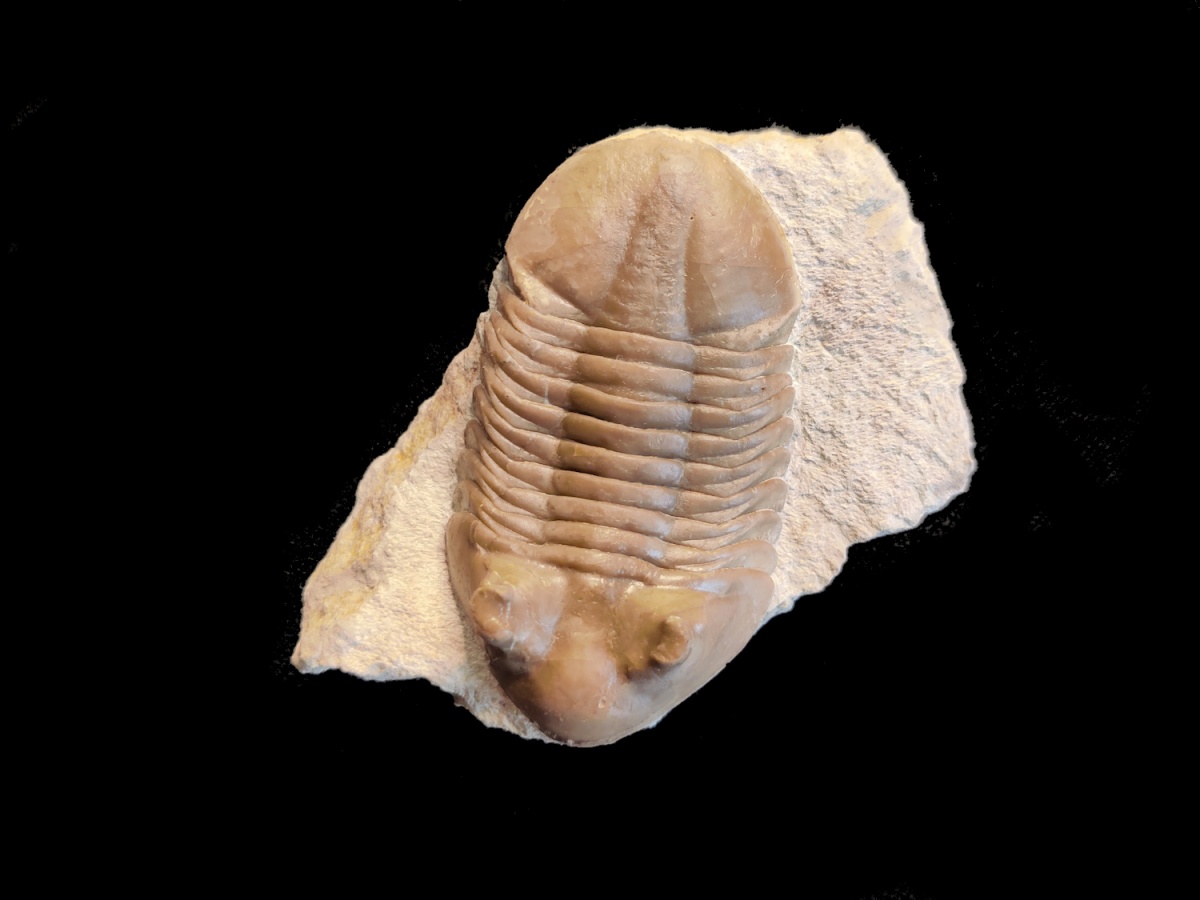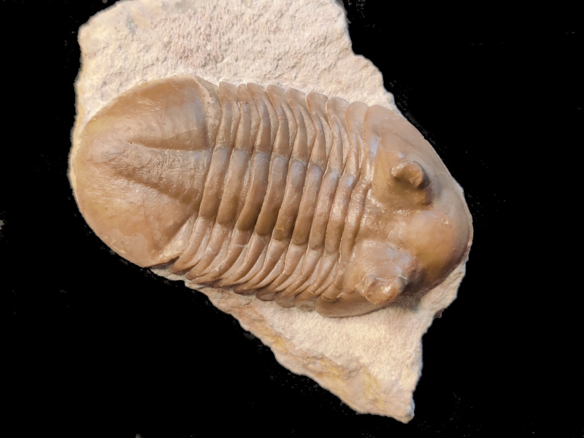 Asaphus kotlukovi (поздняя форма tumidis), очень хорошего качества без какой либо реставрации и склеек, красуется прогнув спинку. Длина 85 мм.