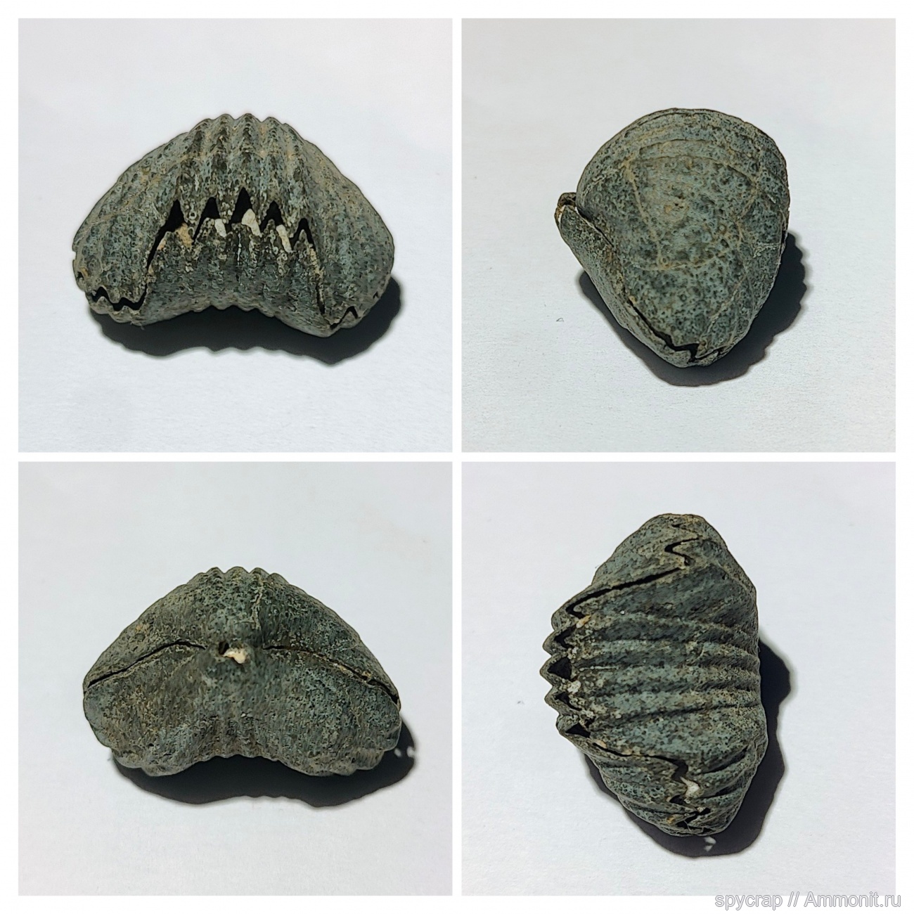 "Зубастая" брахиопода ринхонелида, частично была закрыта породой, удалось химически препарировать в уксусной кислоте, без потери внешнего вида, найдена на берегу канала имени Москвы.