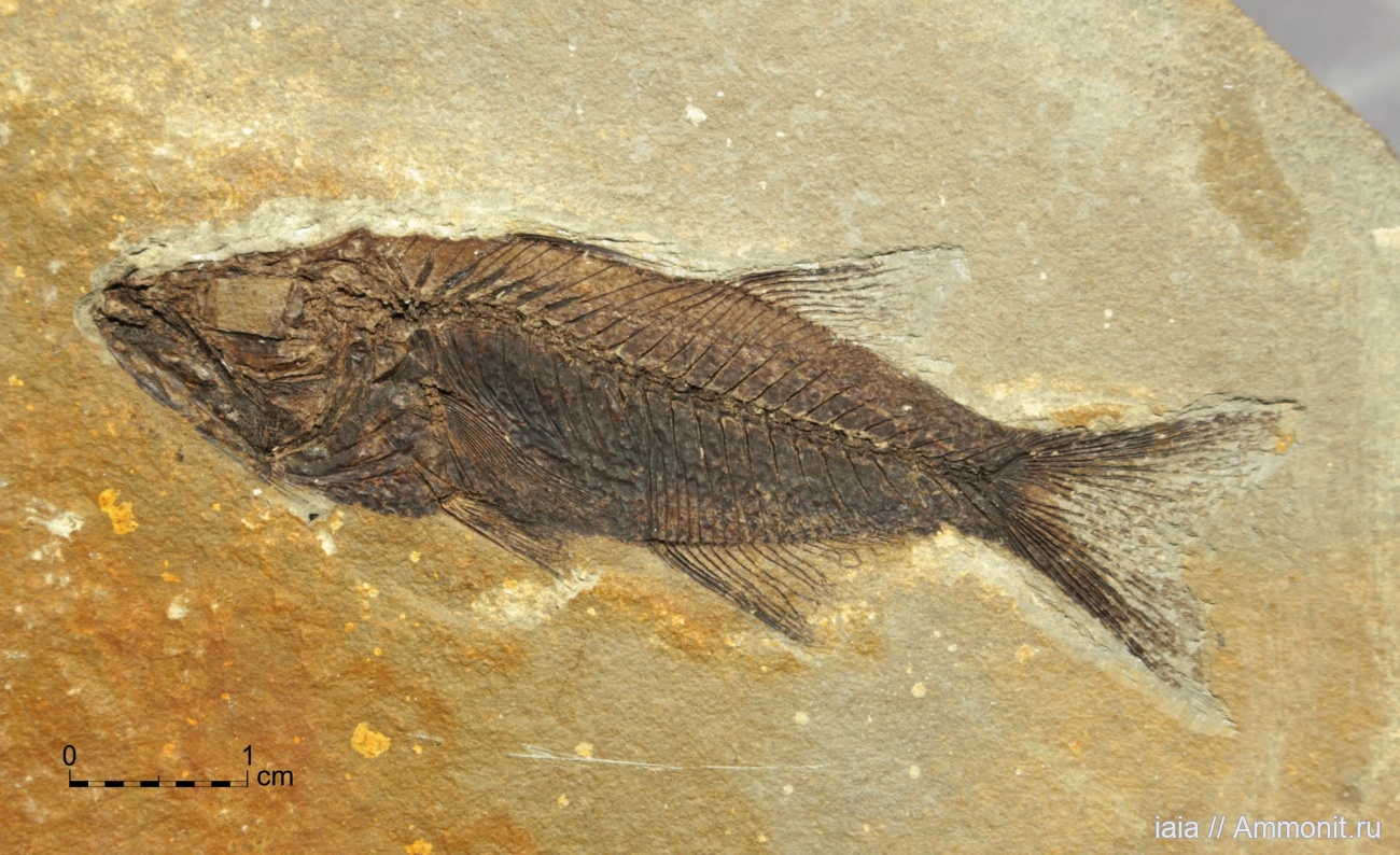 В частности, вот этот образец (2026 года апреля) рыбы Lednevia. Рыба всё-таки относительно редкая, хороших образцов очень мало. Плюс к тому: как правило, связочный аппарат головы у индивидов этой рыбы при захоронении отгнивал не очень удачно. Голова репозиционировалась, в результате чего - большинство скелетов выглядит "не очень". Анатомически удачные образцы (как на реконструкции в канонической статье Банникова) - редкость-редкость. Пусть один такой повисит на аммоните.