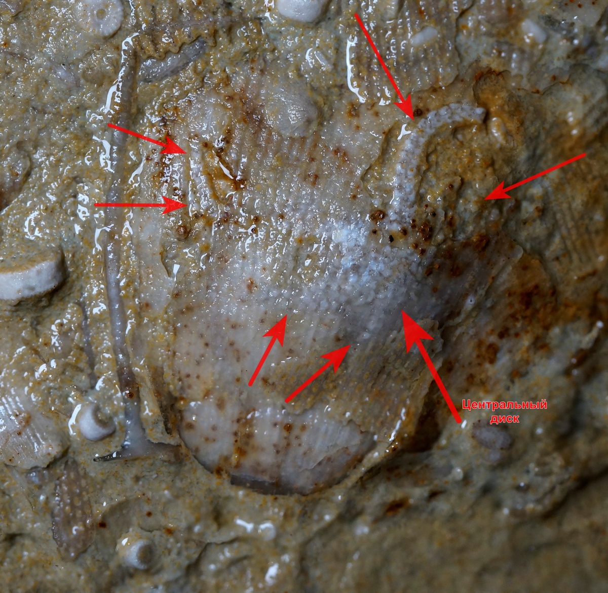 Фото расположения рук и центрального диска офиуры
